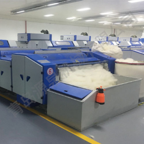 本機主要對山羊絨、綿羊絨、牦牛絨、駝絨、羊駝毛等動物纖維進行開松、梳理。 采用雙給棉板、雙刺輥、雙錫林、雙道夫的梳理排列,節(jié)省設備擺放空間,使其去粗、去雜、去皮屑的效果最大化,是分梳生產(chǎn)線中必備產(chǎn)品之一。