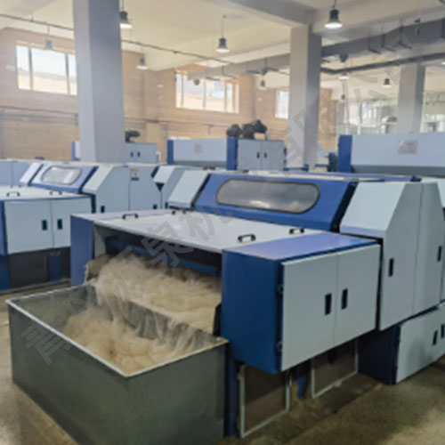 本機開松由雙錫林排列,一輥筒軟開,二輥筒精開。工作輥與撥毛輥結(jié) 合錫林滾筒可達(dá)到開松梳理出單纖維且蓬松狀態(tài)的動物纖維。后輥筒部 分有去粗、去雜效果;分梳行業(yè)為最前道工序,效果突出,是聯(lián)合梳理 機必備產(chǎn)品之一。