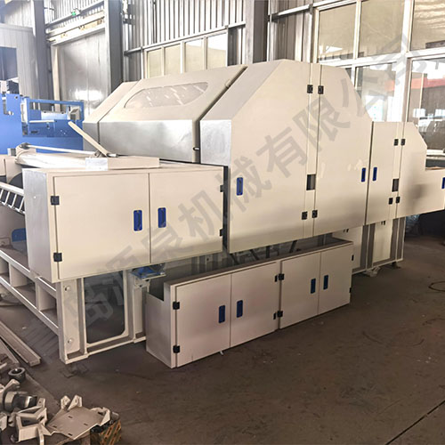 本機主要開松、梳理山羊絨、綿羊絨、牦牛絨、駝絨等動物纖維。經(jīng)過逐 級開松、梳理、去粗、去雜,使原料達到單纖維狀態(tài)供后道梳理工序使用 本機具有開松效果好、下機產(chǎn)量高、纖維損傷率低的優(yōu)點,是羊絨分梳聯(lián) 合機中的優(yōu)選設備之一。